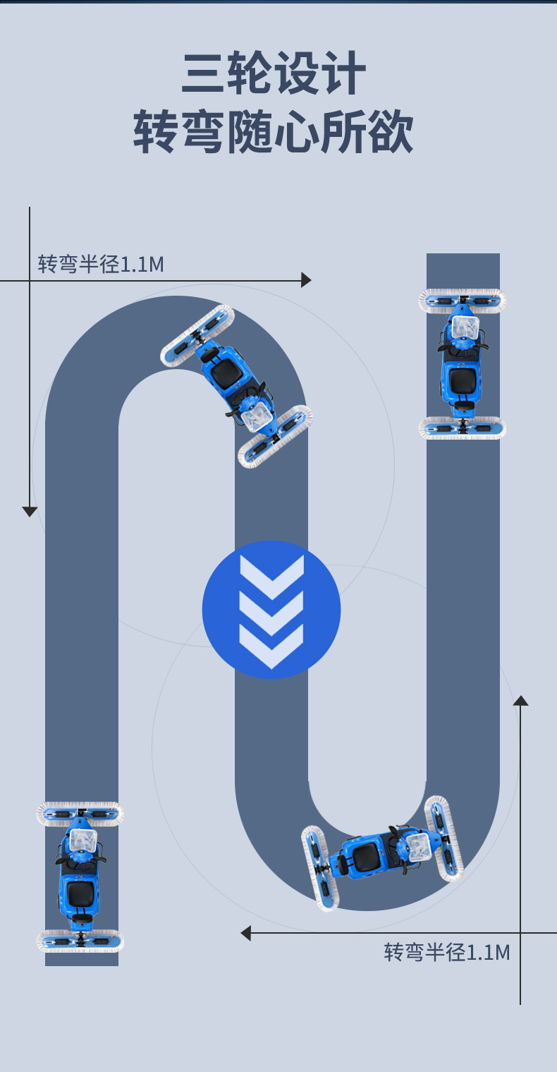 采用電子式剎車、靈巧、工作效率高、清潔效果好