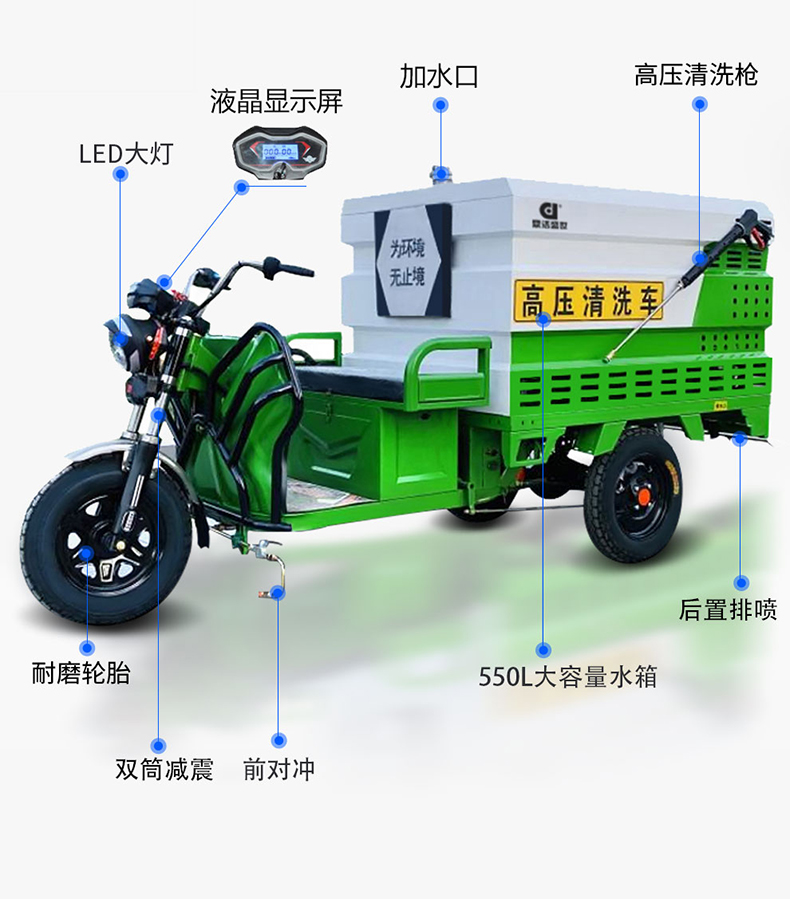 電動(dòng)高壓清洗車視為城市環(huán)衛(wèi),戶外清洗保潔專門設(shè)計(jì)的一款簡(jiǎn)便實(shí)用型產(chǎn)品。